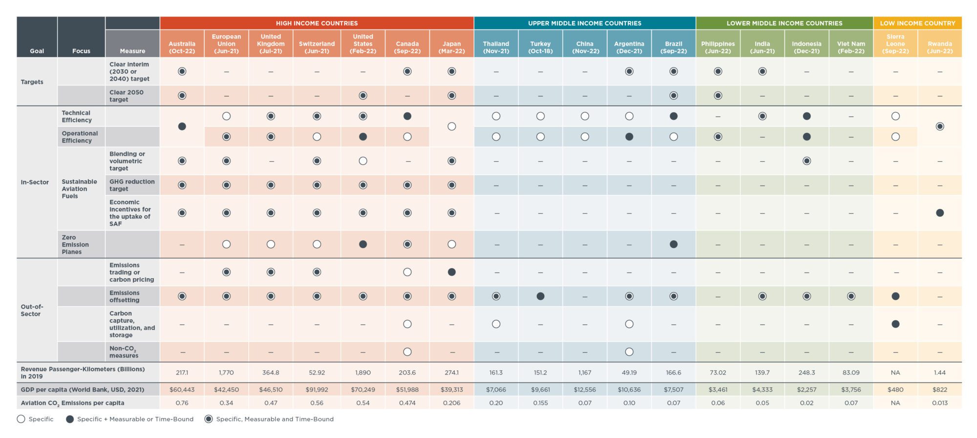 自 2013 年起,各国便开始向国际民用航空组织(ICAO)提交《国家行动计划》(SAPs)。而新达成的国际协议,进一步提升了成员国采取行动的紧迫性。事实上,随着各国着手制定新的《国家行动计划》以支持长期目标(LTAG)协议,若国际民用航空组织能就计划中应包含哪些信息提供更清晰的指导,成员国将从中受益。但提供这类指导并非易事,比如,该协议既未给单个国家或其航空公司设定减排目标,也未制定到 2030 年需达成的阶段性进展目标。