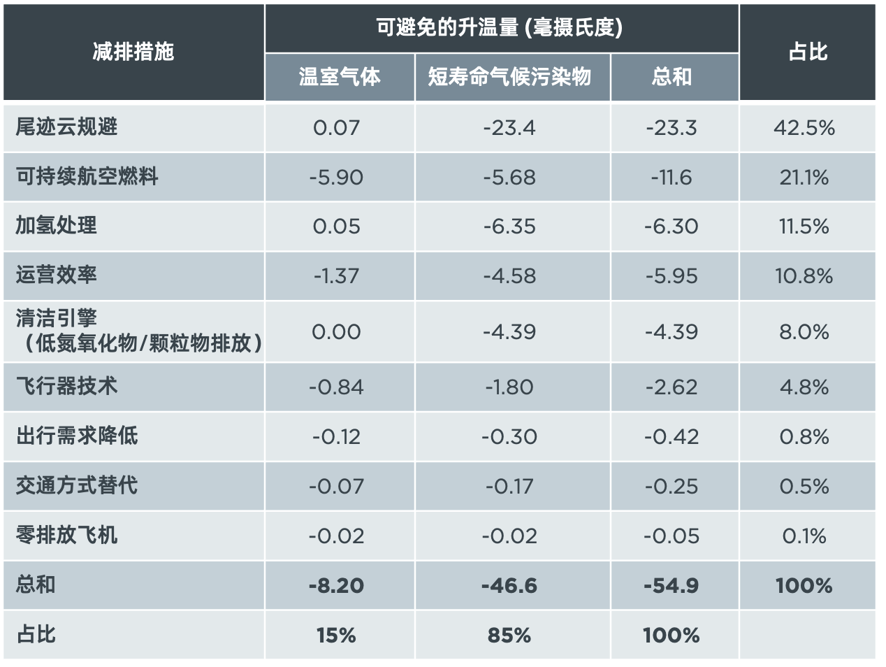 短寿命气候污染物控制见效更快、成本更低。尤其是航迹规避,可贡献约四成的可避免升温,是近期最具性价比的减排措施。