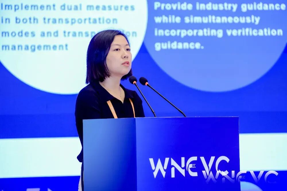 新一代汽车底盘系统(苏州)有限公司总工程师吴晓涛做题为《NGA智能电动半挂车让货运行业驶向“公路动车”新时代》的报告。他介绍了“智能电动半挂车”的概念和具体技术,通过信息感知交互系统、自适应VCU控制系统、大功率重载电驱动系统等核心关键技术。智能牵引销疲劳寿命200万次,确保可靠性里程80万公里,力学特性衰减及零点漂移满足使用精度需求;智能电动半挂车专用从动策略VCU控制系统解决了能够适配所有牵引头及全路况下主挂协同驱动和能量回收问题;根据大数据统计的商用车不同应用场景的使用工况谱,正向开发专属化的电动挂车集成式电驱桥。该技术方案可实现运输能源成本显著降低、行驶速度提升、运载能力提升、碳排放降低。