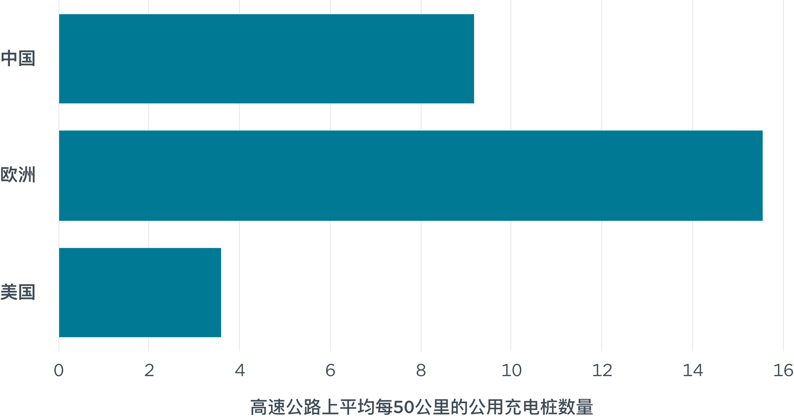 中国已经建成全球规模最大的公用充电基础设施网络用以服务全球最大的电动汽车车队,但中国在高速公路充电桩密度方面相较欧洲仍有可提升的空间。