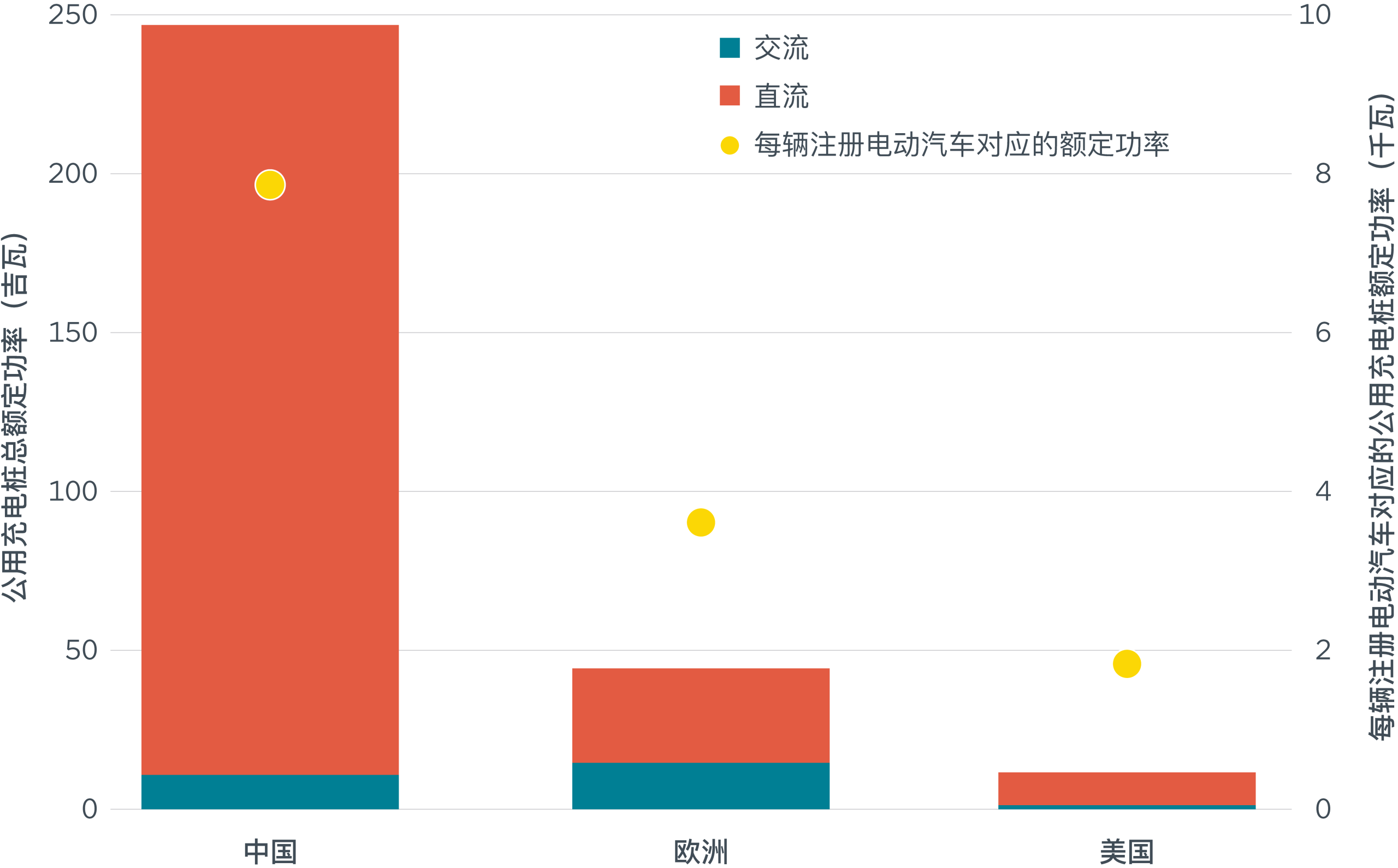 在中国、欧洲和美国的带动下,全球公用充电基础设施的数量实现了快速增长。