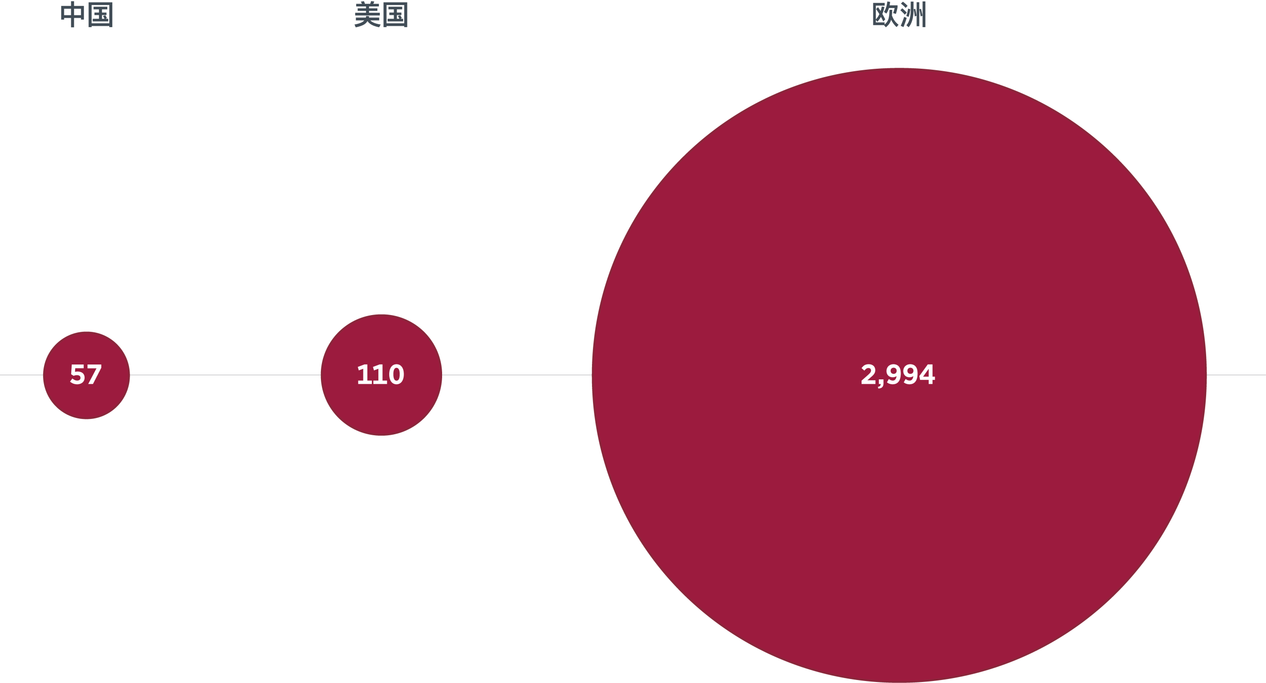 图8. 2024年中国、欧洲和美国的公用充电桩运营商数量