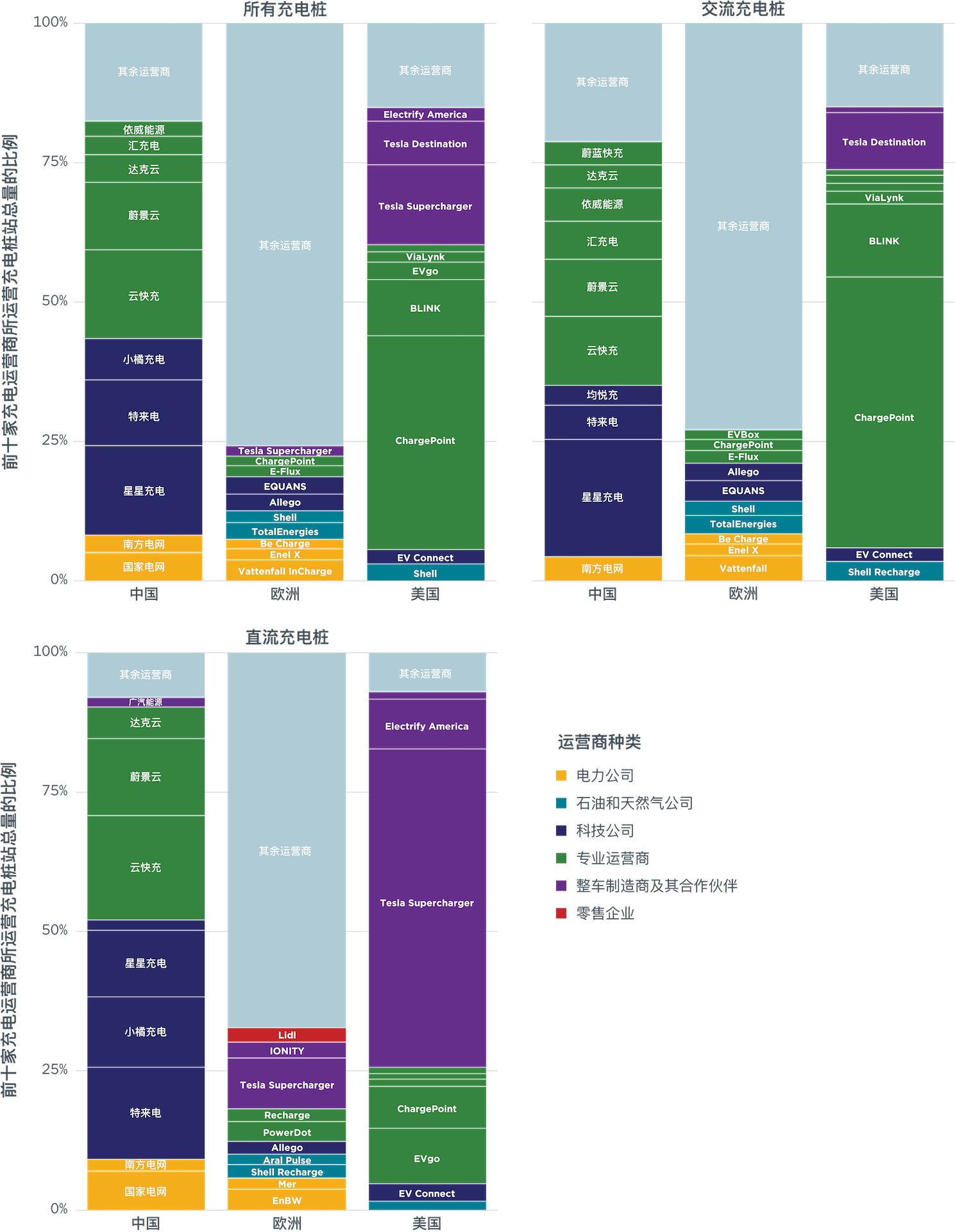 与中国和美国相比,欧洲的公用充电基础设施市场更加分散且多元化。