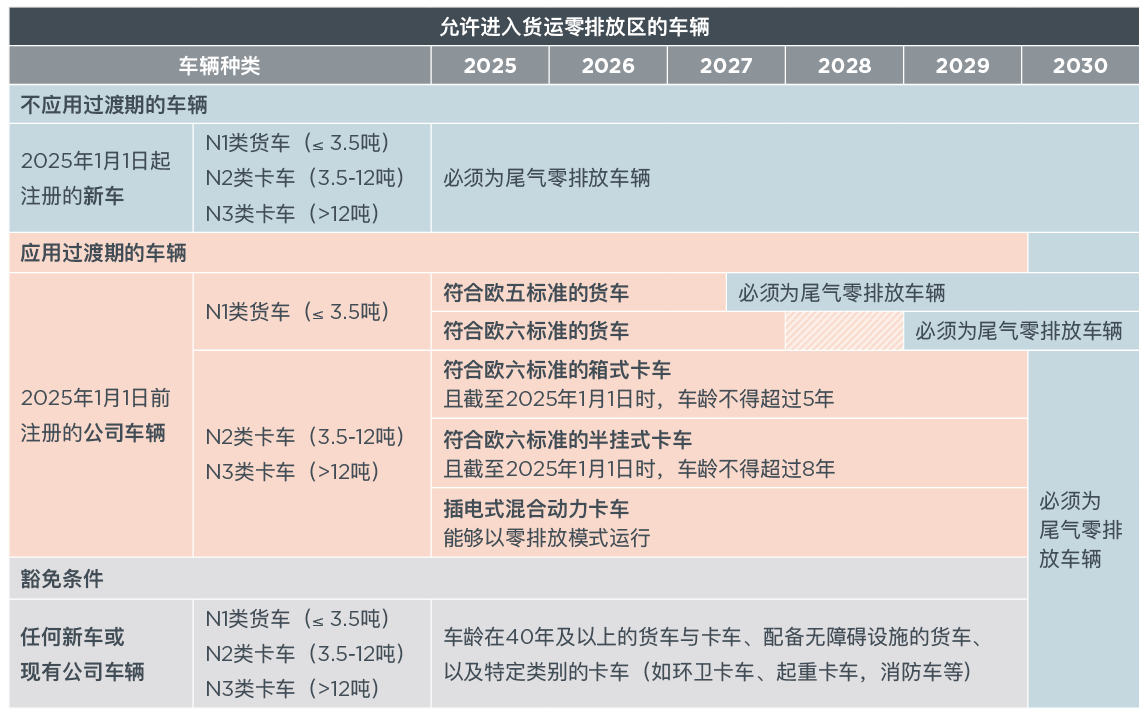 图2. 更新至2025年8月的零排放区准入规则实施时间表