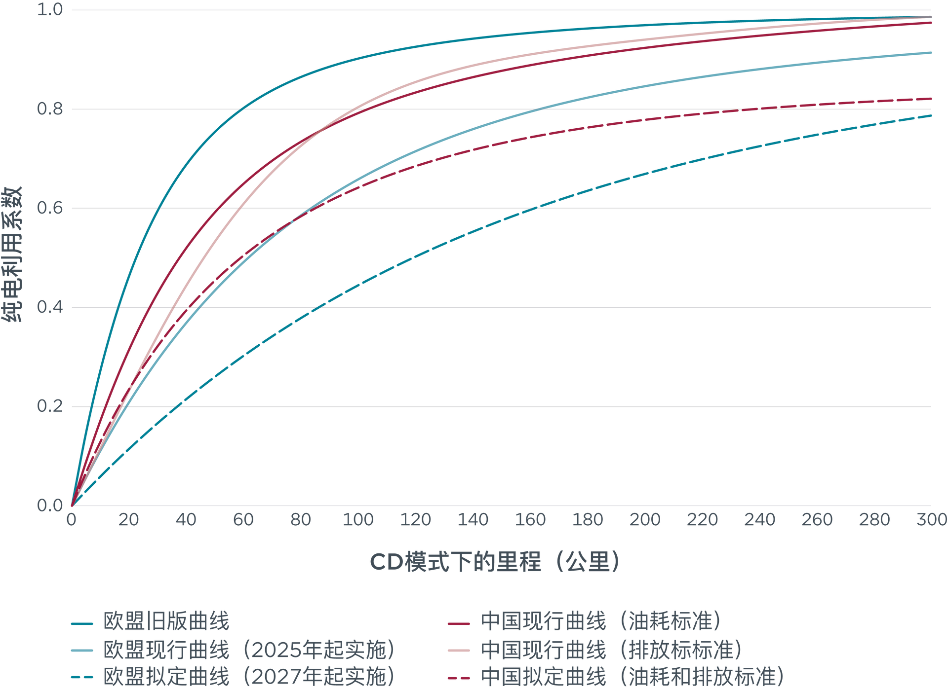 与欧洲类似,美国环保署(EPA)在2024年通过的最新的排放标准中引入了一条新的UF曲线,以更准确反映插混汽车的实际排放情况,这条新的UF曲线也大幅调低了对插混汽车用电行驶里程占比的假设。在地方层面,加州的零排放汽车法规逐步加严了对插混汽车的技术要求,并降低插混汽车在合规中能够贡献的积分上限。不过,受联邦层面环保政策波动的影响,这些政策的前景仍存在不确定性。