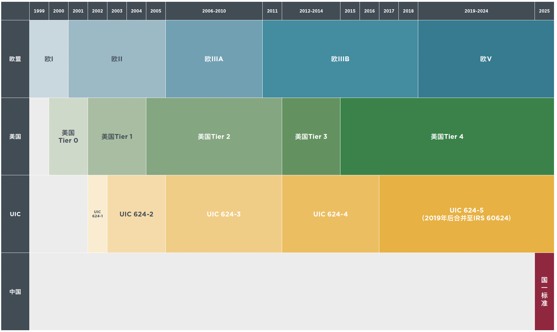 图2. 全球铁路机车排放标准实施时间表